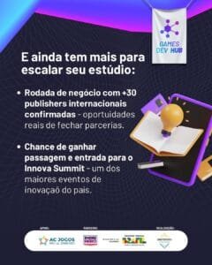 De junho a novembro de 2025, startups e estúdios de jogos contarão com mentoria especializada, suporte jurídico, capacitação em marketing e acesso a investimento, acelerando o crescimento sustentável dos negócios locais.